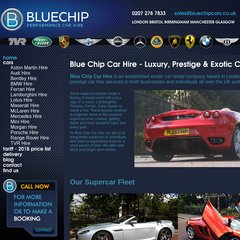 Bluechipcarhire is ranked 2,291,489 in the United States. 'Luxury prestige car hire. Performance Car Hire in London and the UK. Sports car hire | bluechipcars.'