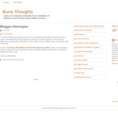 Topics: Burry Thoughts, Bloggus Interruptus, The Burry Man Writers Center, Business Of Writing, Diversions, and Fiction & Poetry.