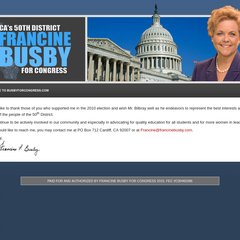 Busbyforcongress is ranked 17,240,062 in the United States. 'Francine Busby for Congress 2010 | Thank You.'