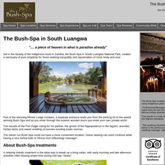 Bush-spa is ranked 17,245,033 in the United States. 'The Award Winning Bush-Spa & Massage Therapies in the heart of South Luangwa, Zambia.'