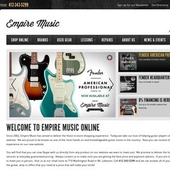 Empiremusiconline is ranked 182,664 in the United States. 'Empire Music - Pittsburgh Guitar Lessons, Music Lessons & Guitar Store.'