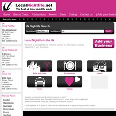 Localnightlife is ranked 3,587,664 in the United States. 'Local nightlife in the Uk | Bars & Clubs | Restaurants | Hotels | Dating | Taxis.'