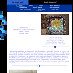 Topics: Gallery, Mirrors, Mosaic "paintings", Commissions, Work in progress, and Contact information.