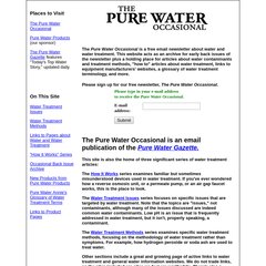 Topics: The Pure Water Occasional, The Pure Water Gazette, Water Treatment Issues, Water Treatment Methods, and "how It Works" Series.