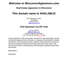 Wisconsinappraisers is ranked > 3,000,000 in the United States. 'Welcome to WisconsinAppraisers.com. This site is available.'